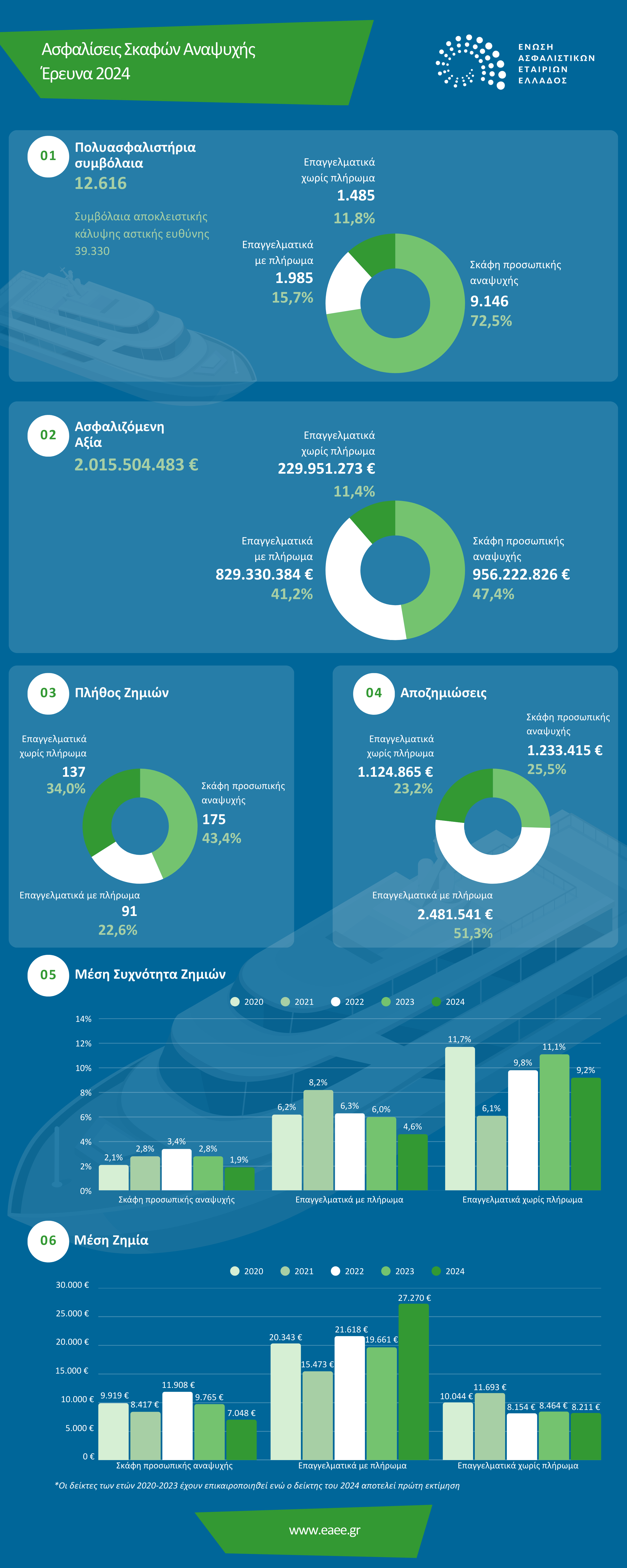 Η Επιτροπή Περιουσίας, Αντασφαλίσεων, Μεταφορών & Σκαφών της ΕΑΕΕ αφού έλαβε υπόψη της τις ανάγκες ολοκληρωμένης πληροφόρησης των ασφαλιστικών επιχειρήσεων που δραστηριοποιούνται στις ασφαλίσεις σκαφών αναψυχής, συνέχισε για μία ακόμη χρονιά την συστηματική συλλογή στατιστικών στοιχείων του κλάδου.