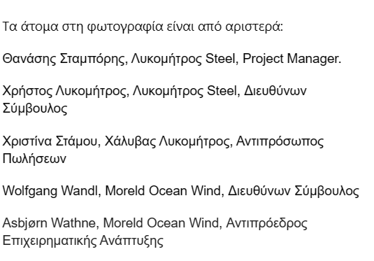 Η Lykomitros Steel είναι ενθουσιασμένη που συνεργάζεται με την Moreld Ocean Wind για την κατασκευή των πρώτων τους έργων.