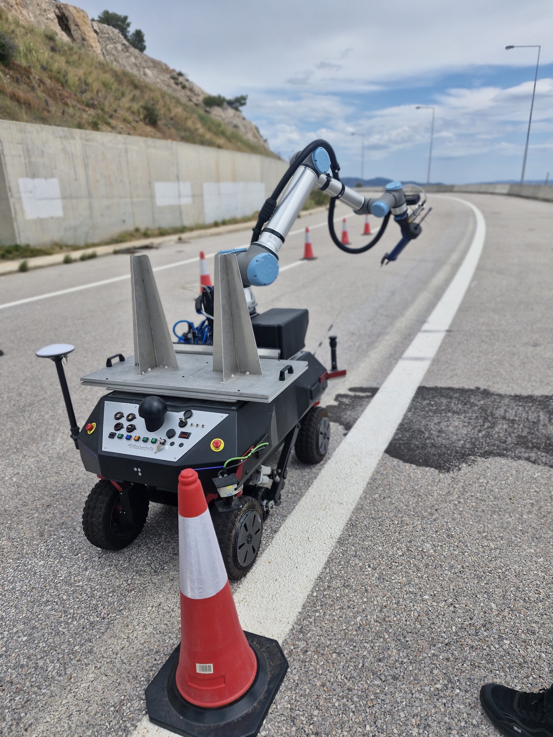 Ένα ρομπότ που επισκευάζει μόνο του επιφάνειες σε πιλοτική δοκιμή. Ενίσχυση της ασφάλειας οδηγών και εργαζομένων. Πιλοτικό πρόγραμμα καινοτομίας του ευρωπαϊκού προγράμματος HORIZON 2020.
