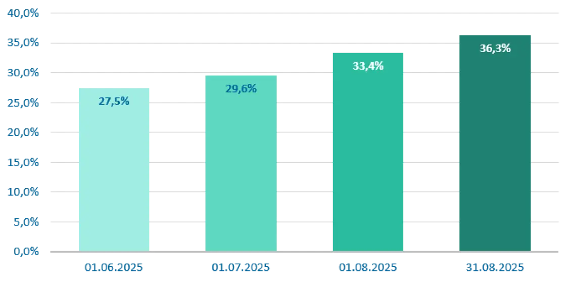 Από την εικόνα του χαρτοφυλακίου σε ισχύ των ανωτέρω επιχειρήσεων, το ποσοστό επί του συνόλου των συμβολαίων που διαθέτει την κάλυψη των φυσικών φαινομένων*, εξελίσσεται ως εξής: