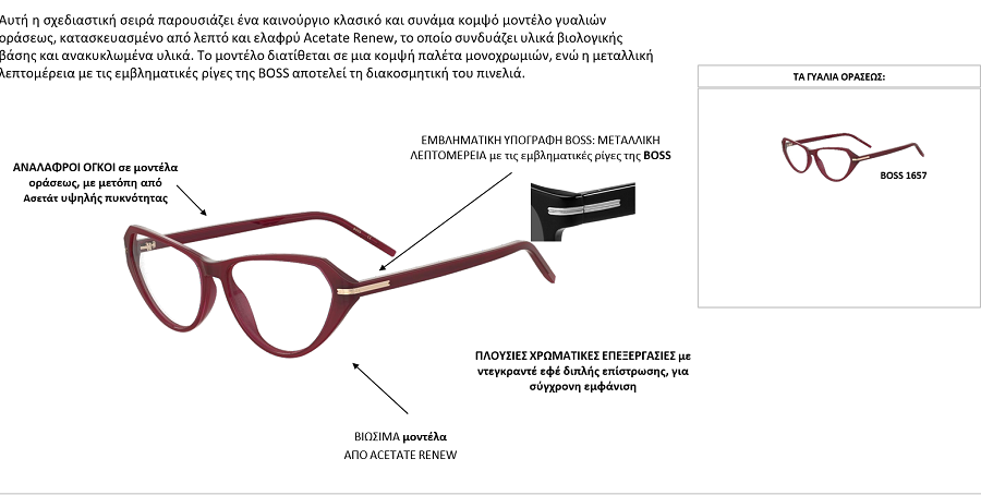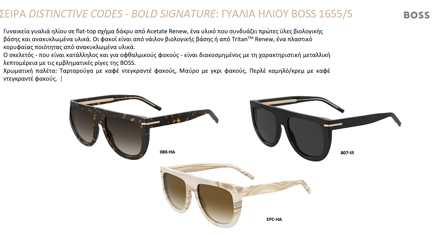 ΓΙΑ ΤΗ ΣΕΖΟΝ ΑΝΟΙΞΗ/ΚΑΛΟΚΑΙΡΙ 2024, Η ΓΥΝΑΙΚΕΙΑ ΣΥΛΛΟΓΗ ΓΥΑΛΙΩΝ BOSS ΠΑΡΟΥΣΙΑΖΕΙ ΝΕΑ ΓΥΑΛΙΑ ΗΛΙΟΥ ΚΑΙ ΟΡΑΣΕΩΣ ΠΟΥ ΔΗΜΙΟΥΡΓΗΘΗΚΑΝ ΑΠΟ ΚΟΡΥΦΑΙΑΣ ΠΟΙΟΤΗΤΑΣ ΥΛΙΚΑ ΚΑΙ ΔΙΑΚΟΣΜΟΥΝΤΑΙ ΜΕ ΥΠΕΡΟΧΕΣ ΛΕΠΤΟΜΕΡΕΙΕΣ.