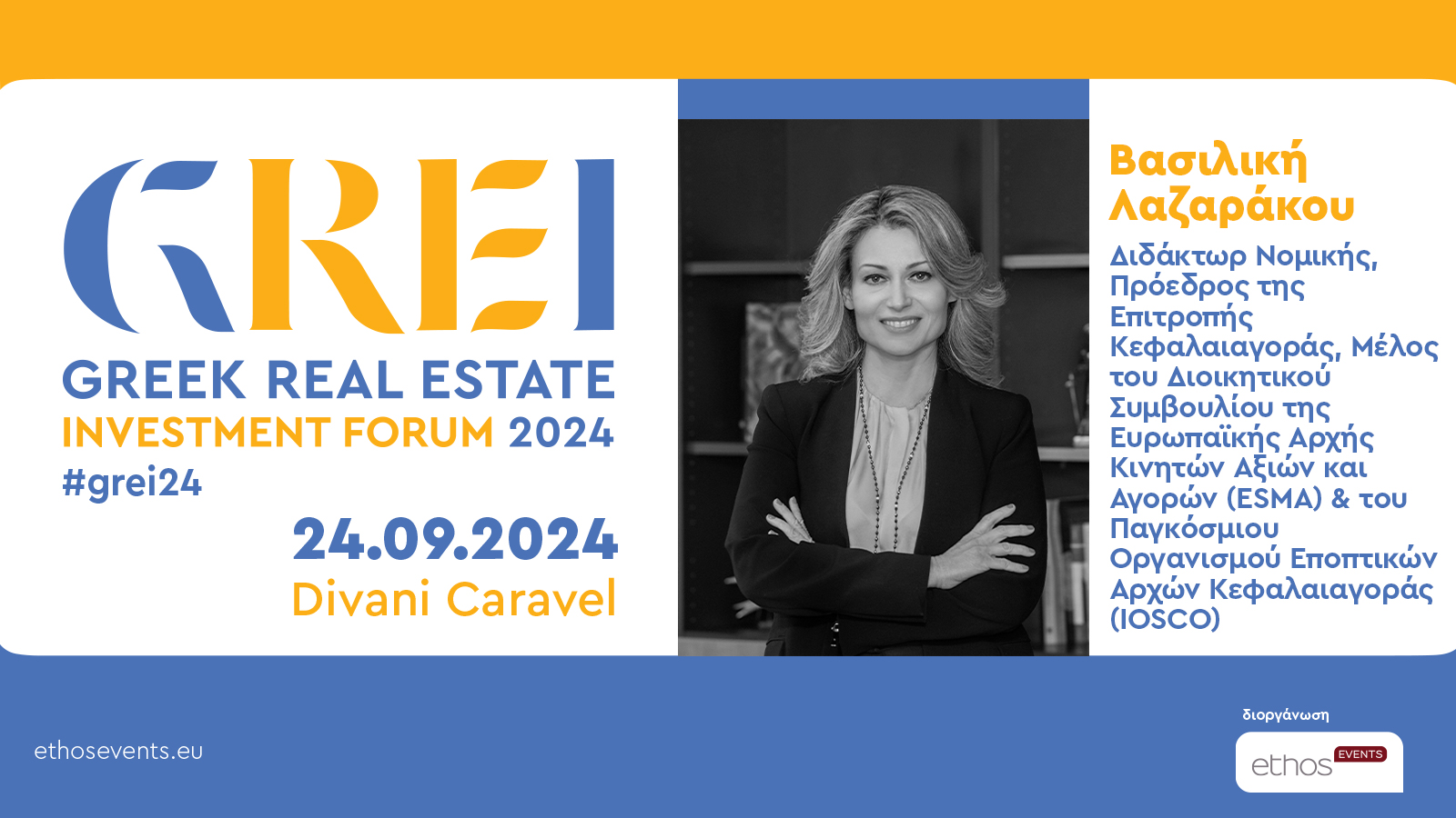 Greek Real Estate Investment Forum 2024| ethosEVENTS καθώς επίσης και τα social κανάλια Facebook και LinkedIn