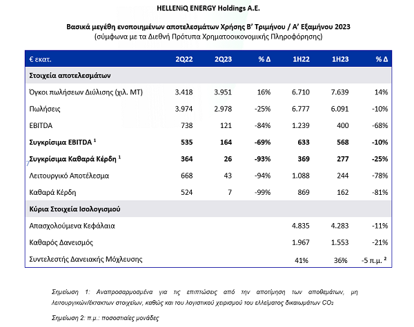 HELLENiQ ENERGY: Αποτελέσματα Β’ Τριμήνου / Α’ Εξαμήνου 2023