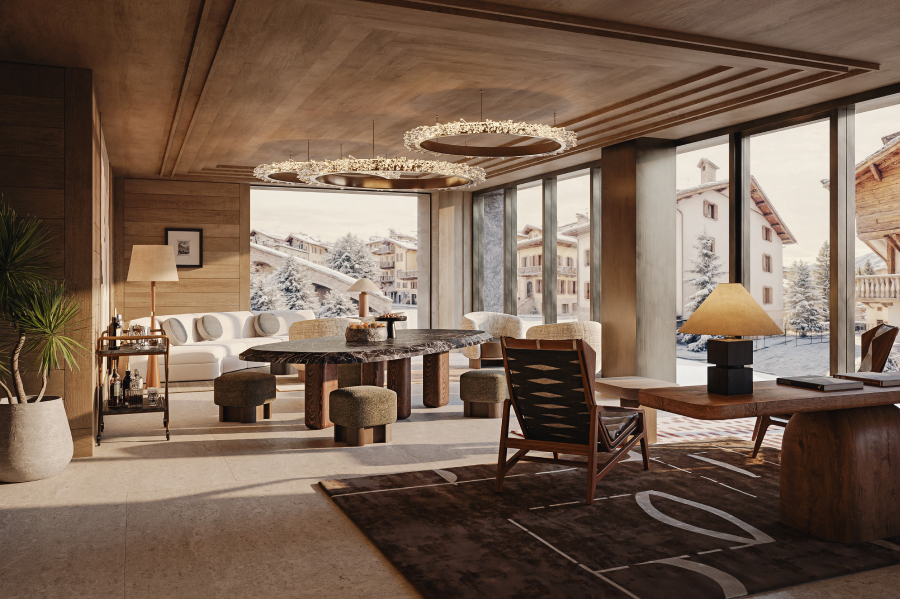 Αποτίνοντας φόρο τιμής στη φυσική ομορφιά των Δολομιτών και την παράδοση της φιλοξενίας της Cortina, ο σχεδιασμός του ξενοδοχείου θα συνδυάζει την αλπική κομψότητα με σύγχρονα εκλεπτυσμένα στοιχεία. Με στοιχεία εμπνευσμένα από το ορεινό περιβάλλον της περιοχής και ειδικά δημιουργημένα για αυτό το ξενοδοχείο με υλικά τοπικής προέλευσης, οι εσωτερικοί χώροι θα προσφέρουν μια εκλεπτυσμένη, εμβληματική εμπειρία.