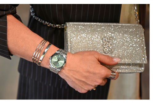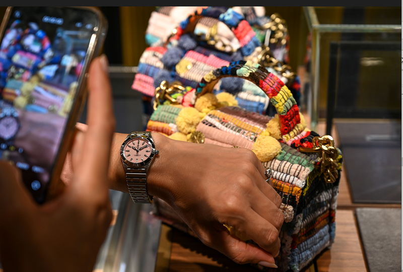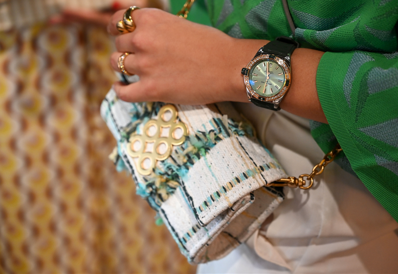 Η Λίλα Καραγιάννη, creative director της Kooreloo, εμπνέεται από την ελληνική παράδοση και δημιουργεί μικρά έργα τέχνης με μεσογειακή φινέτσα. Η σύμπραξη των δυο brands γέμισε την boutique της Breitling με υπέροχα καλοκαιρινά σχέδια και χρώματα που ταίριαξαν απόλυτα με τα παστέλ καντράν των Chronomat αλλά και τις ψηφιδωτές στεφάνες των Navitimer. Για όλους τους καλεσμένους που παραβρέθηκαν δημιουργήθηκε και μια πολύ περιορισμένης έκδοσης τσάντα, σε τζην μπλε ή hot pink, αποκλειστικά για την εκδήλωση.