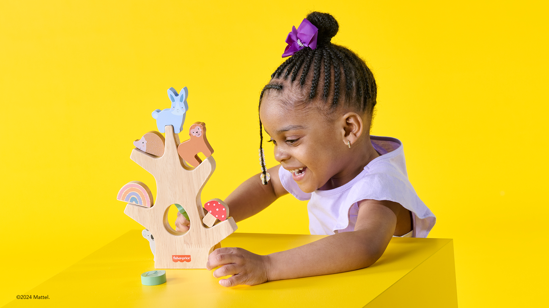 - Fisher–Price ® Ξύλινο Δέντρο Ισορροπίας, (Π.Λ.Τ.: €20.99 | 3 ΕΤΩΝ+): Ξύλινο Δεντράκι ισορροπίας με ζωάκια, ουράνιο τόξο, φυτό και μανιτάρι που μπορείς να στοιβάξεις και να τα ισορροπήσεις. Βοηθάει στην ανάπτυξη συντονισμού χεριού-ματιών, της λεπτής κινητικότητας, της αισθητηριακής, απτικής και γνωστικής σκέψης.