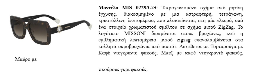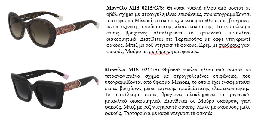 ΓΥΑΛΙΑ ΗΛΙΟΥ ΚΑΙ ΟΡΑΣΕΩΣ MISSONI SEASONAL