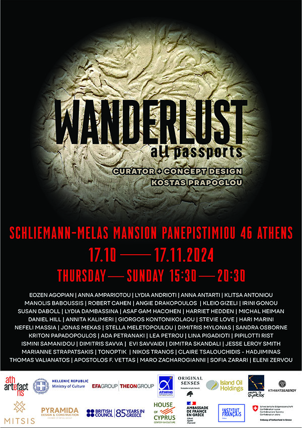 Η “Wanderlust”, σε επιμέλεια του δρα Κώστα Πράπογλου, εξερευνά την έννοια του ταξιδιού και τη σημασία του στην αυτογνωσία, την υπαρξιακή αναζήτηση και τη συναισθηματική αφύπνιση. Η έκθεση, που φιλοξενεί 44 καλλιτέχνες από την Ελλάδα και το εξωτερικό, προσκαλεί τους επισκέπτες σε ένα συναρπαστικό ταξίδι μέσα από εγκαταστάσεις, βίντεο, γλυπτά και ζωγραφική, δημιουργώντας έναν διάλογο μεταξύ παρελθόντος, παρόντος και μέλλοντος, ενθαρρύνοντας τον επισκέπτη να μπει σε διαδικασία ενδοσκόπησης.