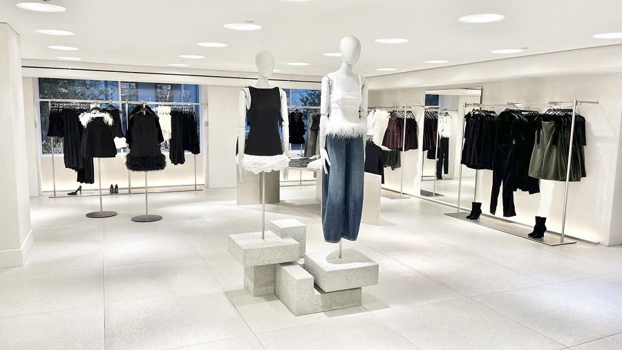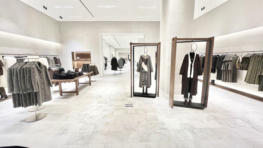 Η αισθητική του καταστήματος συνδυάζει μια μινιμαλιστική φιλοσοφία με τη χρήση προσεκτικά επιλεγμένων υλικών υψηλής ποιότητας. Αυτό τονίζει την πολυτέλεια των προϊόντων που παρουσιάζονται, προσφέροντας μια αίσθηση καθαριότητας και απλότητας. Ο διακριτικός και στρατηγικά τοποθετημένος φωτισμός ενισχύει την εμφάνιση του κάθε κομματιού, δημιουργώντας μια ζεστή και φιλόξενη ατμόσφαιρα. Παράλληλα, οι ευρύχωροι και καλά οργανωμένοι χώροι διευκολύνουν την άνετη περιήγηση των πελατών, κάνοντας την εξερεύνηση των νέων συλλογών μια πραγματικά ευχάριστη εμπειρία.