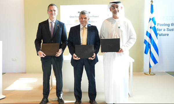Μνημόνιο Κατανόησης (MoU) μεταξύ του Ανεξάρτητου Διαχειριστή Μεταφοράς Ενέργειας της Ελλάδας (ΑΔΜΗΕ), του Υπουργείου Ενέργειας, Εμπορίου και Βιομηχανίας της Κύπρου και της TAQA, καθετοποιημένου ενεργειακού ομίλου με έδρα το Άμπου Ντάμπι υπεγράφη χθες, Δευτέρα 4 Δεκεμβρίου, στο ελληνικό περίπτερο στην COP 28 στο Ντουμπάι.