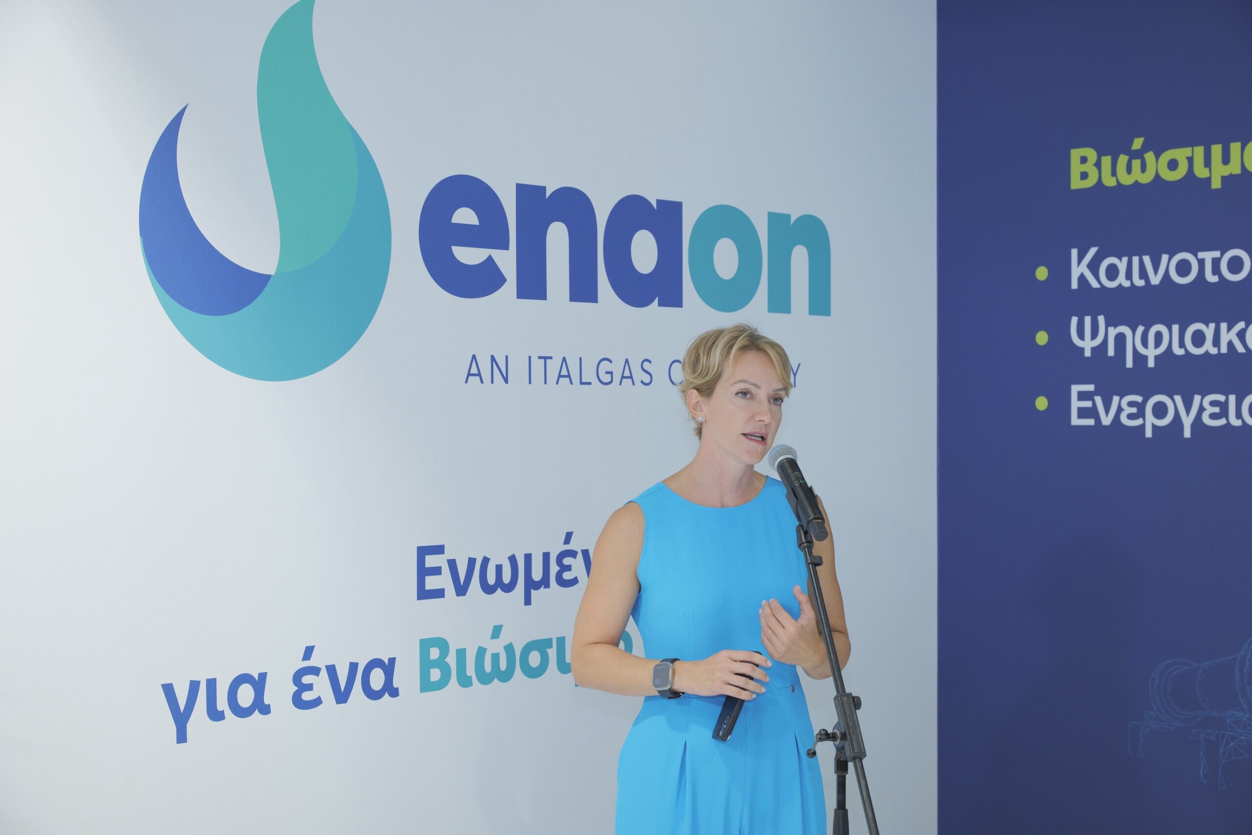 Από την πλευρά της, η Διευθύνουσα Σύμβουλος της Enaon, κυρία Barbara Morgante εξέφρασε τις θερμές ευχαριστίες της προς τον Υπουργό Περιβάλλοντος και Ενέργειας, κ. Θόδωρο Σκυλακάκη, την Υφυπουργό Περιβάλλοντος και Ενέργειας, κυρία Αλεξάνδρα Σδούκου, τον Ιταλό πρέσβη στην Ελλάδα, κ. Paolo Cuculi, καθώς και όλους τους διακεκριμένους προσκεκλημένους που παρευρέθηκαν στα εγκαίνια, αλλά και στους πολίτες που επισκέπτονται το περίπτερο για να ενημερωθούν για το έργο της εταιρείας. «Υιοθετώντας τις αξίες του μητρικού Ομίλου Italgas, στόχος μας είναι να καλύψουμε τις ενεργειακές ανάγκες των κατοίκων όλης της ελληνικής επικράτειας.
