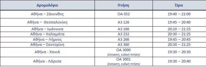 Ειδικότερα, το Μεγάλο Σάββατο το πρόγραμμα των προγραμματισμένων και έκτακτων πτήσεων της AEGEAN και της Olympic Air για τη μεταφορά του Αγίου Φωτός, διαμορφώνεται ως εξής: