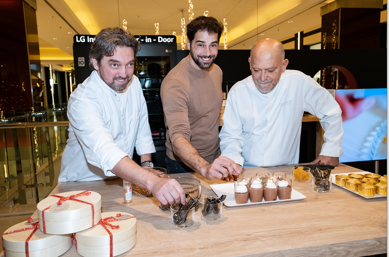 Επιπλέον, μια έκπληξη περίμενε όσους παρευρέθηκαν την Πέμπτη 24 Νοεμβρίου στην εκδήλωση, αφού ο γνωστός Pastry Chef Στέλιος Παρλιάρος βρέθηκε επίσης στο Golden Hall, αποκαλύπτοντας με μία live επίδειξη τα μυστικά για την τέλεια διακόσμηση των χριστουγεννιάτικων γλυκών. Σύμμαχος του για τις πετυχημένες συνταγές γλυκών το LG ψυγείο ντουλάπα Instaview Door-in-DoorTM.