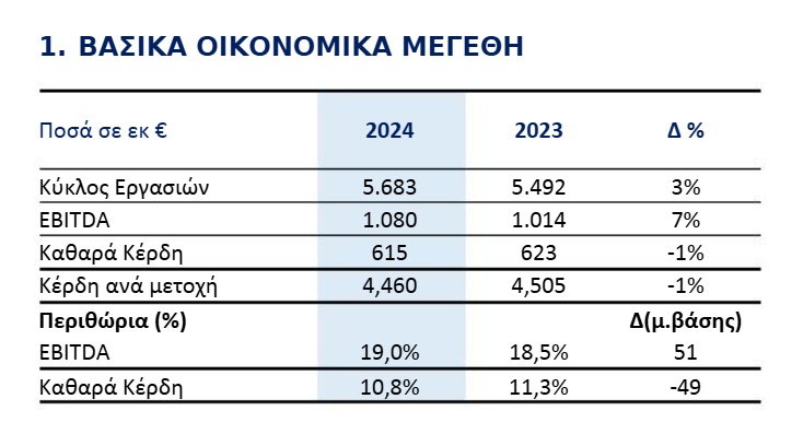 –Ο Κύκλος Εργασιών αυξήθηκε στα €5.683 εκατ., σε σύγκριση με €5.492 εκατ. το 2023, παρά τη σημαντική μείωση των τιμών ηλεκτρικής ενέργειας και φυσικού αερίου.