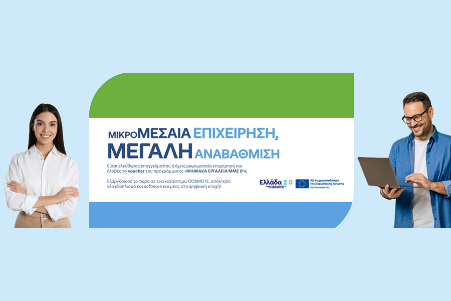 Πρόγραμμα «Ψηφιακά Εργαλεία ΜΜΕ Β’»: Ξεκίνησε η εξαργύρωση του voucher έως 90% για αγορά τεχνολογικού εξοπλισμού και software σε COSMOTE και ΓΕΡΜΑΝΟ