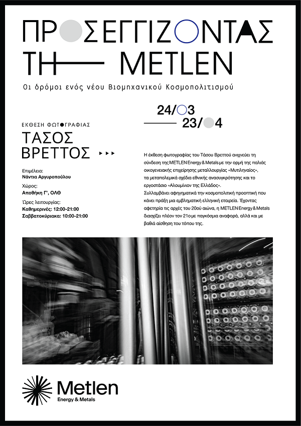 «Προσεγγίζοντας τη METLEN: Οι δρόμοι ενός νέου Βιομηχανικού Κοσμοπολιτισμού» Έκθεση Φωτογραφίας του Τάσου Βρεττού για την Ιστορία και το Μέλλον της Ελληνικής Μεταλλουργίας