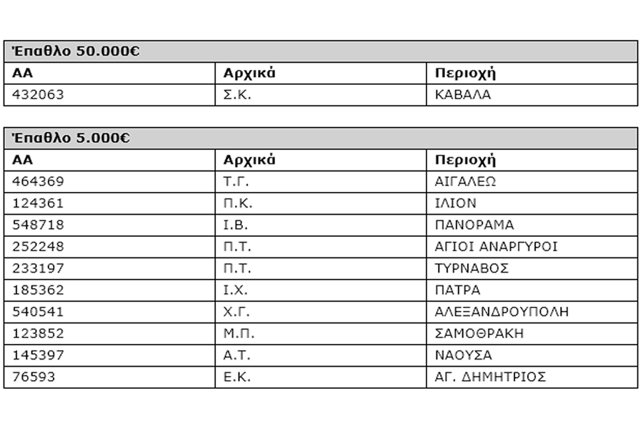 - 1 υπερτυχερός κέρδισε 50.000€