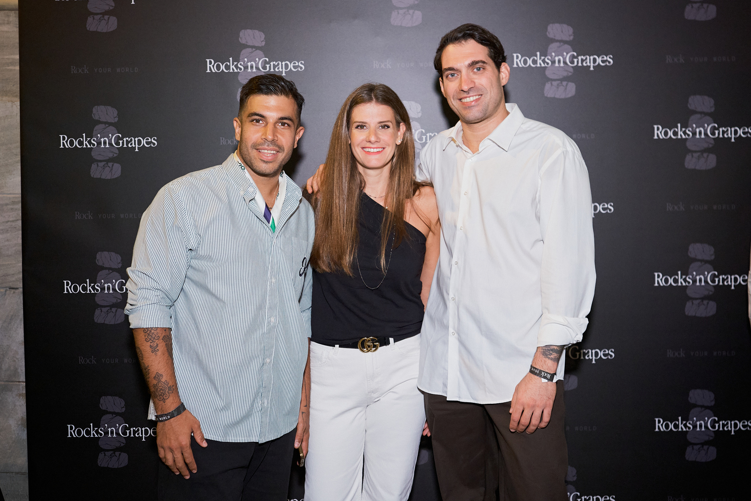 Η Κλαίρη Χαρόγιαννη, Marketing Director της Beverage World μαζί με τους Δημιουργούς του Rocks ‘n‘ Grapes, Αλέξανδρος Τσελεπής και Κωνσταντίνος Θεοδωρακόπουλος