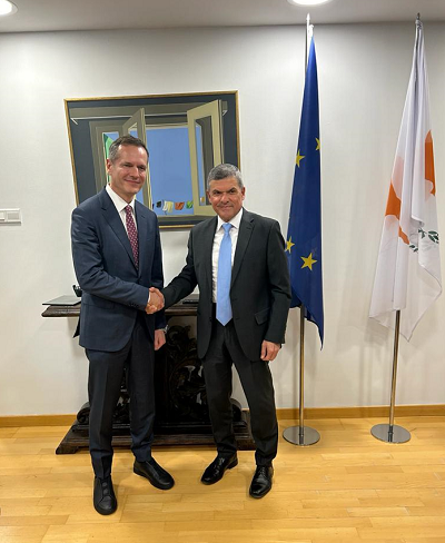 Ο κ. Μανουσάκης συναντήθηκε με τον Πρόεδρο της Κυπριακής Δημοκρατίας κ. Νίκο Χριστοδουλίδη, τον Υπουργό Ενέργειας, Εμπορίου και Βιομηχανίας κ. Γιώργο Παπαναστασίου, τη Ρυθμιστική Αρχή Ενέργειας Κύπρου (ΡΑΕΚ) και τον Εκτελεστικό Διευθυντή του Διαχειριστή Συστήματος Μεταφοράς της Κύπρου (ΔΣΜΚ) κ. Σταύρο Σταυρινό.