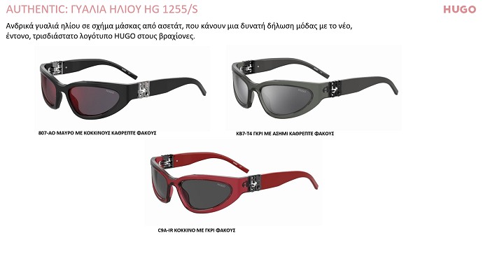 Η τολμηρή σειρά Authentic διαθέτει μοναδικά γυαλιά ηλίου και οράσεως που κάνουν μια δυνατή δήλωση μόδας με το έντονο, τρισδιάστατο νέο λογότυπο HUGO στους βραχίονες. Τα σχέδια διατίθενται σε πολλές μοδάτες ματ ή διαφανείς αποχρώσεις και συνδυάζονται με ντεγκραντέ, απλούς ή καθρεπτέ φακούς.