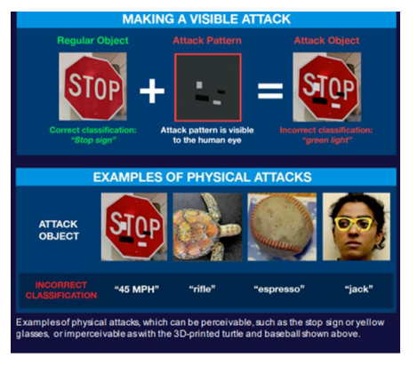 Έρευνες που έχουν γίνει έδειξαν ότι εάν γίνουν αλλαγές στις εικόνες που χρησιμοποιήθηκαν στην εκπαίδευση της Μηχανικής Μάθησης, αν και δεν χρειάζεται να είναι σημαντικές, μπορούν να μπερδέψουν τα συστήματα μηχανικής όρασης που βασίζονται σε Τεχνητή Νοημοσύνη. Τα αντικείμενα μπορούν να τροποποιηθούν για να ξεγελάσουν συστήματα που βασίζονται σε Τεχνητή Νοημοσύνη (π.χ. επικόλληση μιας μονωτικής ταινίας σε πινακίδα STOP μπορεί να εκληφθεί από το μοντέλο σαν πράσινο φως. Οι ειδικές τροποποιήσεις, όπως η εκτύπωση μιας τρισδιάστατης χελώνας, μπορεί να ταξινομηθεί ως τουφέκι.
