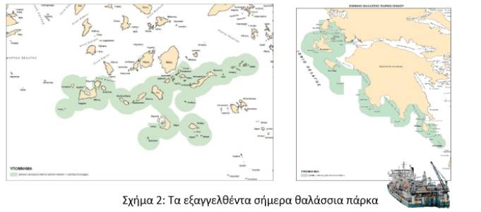 Διαψεύστηκαν δε παλαιότερα δημοσιεύματα που έλεγαν ότι η Ελλάδα θα περιορίσει τα όρια των θαλασσίων πάρκων της στα 3 ναυτικά μίλια. Τα δύο αυτά πάρκα έχουν τον χαρακτήρα δύο συνεκτικών περιοχών και ενοποιούν περιοχές του ευρωπαϊκού δικτύου Natura 2000. Αυτό του Αιγαίου περιλαμβάνει 18 τέτοιες περιοχές και το αντίστοιχο του Ιονίου 24.