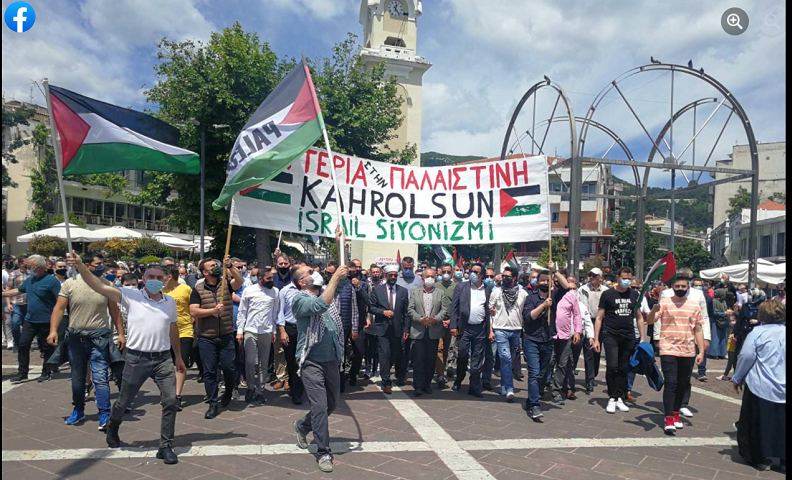 Το “Kahrolsun Israil Siyonizmi” μεταφράζεται σε “κάτω”, αλλά και σε “θάνατος στον ισραηλινό σιωνισμό”, (για ευνόητους λόγους αποφεύχθηκε το ανοιχτά αντισημιτικό σύνθημα “Θάνατος στο Ισραήλ” που φωνάζουν οι υποστηρικτές της Χαμάς και οι οπαδοί του Ερντογάν). Η δικαιολογία περί ανοιχτής εκδήλωσης δεν ακούγεται πειστική, καθώς διαδηλωτές με σημαίες του ΣΥΡΙΖΑ βρίσκονται κοντά στο επίμαχο πανό των οπαδών του ψευδομουφτή, ο οποίος διακρίνεται, σε χαρακτηριστική φωτογραφία, στην πρώτη γραμμή του μπλοκ.