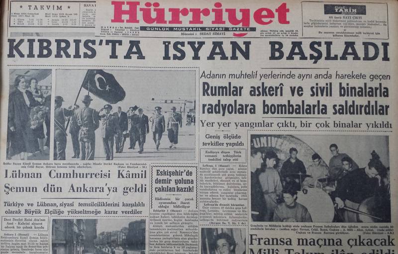 Η “Χουριέτ” εκδόθηκε την πρωτομαγιά του 1948 και εκδότης της ήταν ο Süleyman Sedat Simavi, ο οποίος τον Δεκέμβριο του 1953 πέθανε. Το προσωπικό ενδιαφέρον του Simavi για την Κύπρο ξεκίνησε μετά από ένα ταξίδι που είχε κάνει στο νησί μαζί με το στέλεχος της εφημερίδας, Hikmet Bil.