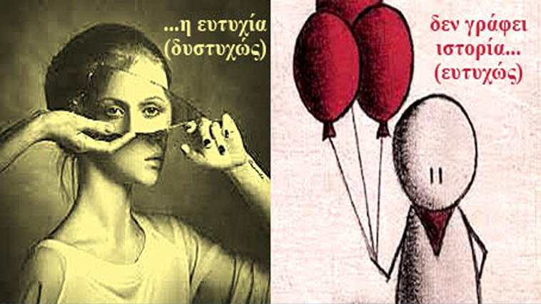 Η “ευτυχία” μπορεί να εμπνεύσει ένα παραμυθάκι, να αφήσει μία ευχάριστη μνήμη-αίσθηση, αλλά συνταρακτική δημιουργία, όχι, ποτέ δεν μπορεί να εμπνεύσει! Αυτό συμβαίνει, γιατί, “ιστορία” γράφει μόνο η δυστυχία, με τα δυσάρεστα γεγονότα, τα “συγκρουσιακά”, μάλλον επειδή φαίνεται ότι το ένστικτο της αυτοσυντήρησης, εισπράττει και μεταφράζει τη δυστυχία ως απειλή! Έτσι κινητοποιείται πιο έντονα (το ένστικτο), οπότε καταγράφει στη μνήμη ως “ιστορία” το συγκεκριμένο δυστυχές γεγονός! Σε όλες τις μορφές της τέχνης, τα δημιουργήματα, τα οποία έχουν κάνει εντύπωση και έχουν γράψει ιστορία, ΔΕΝ αναφέρονται σε “ευτυχία”! Η ευτυχία περνάει στο ντούκου, σαν κάτι φυσικό, αυτονόητο και δεδομένο, ενώ η δυστυχία αφήνει τη σφραγίδα της, στη ζωή…