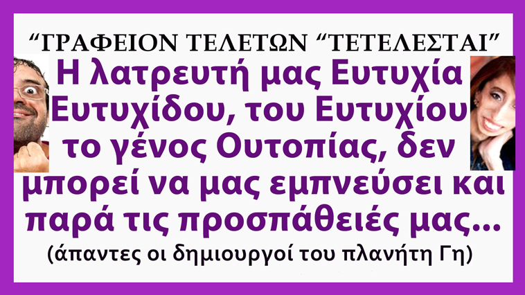 Έχει κι άλλα, τέτοια, μαύρα μαργαριτάρια… Πάντως, η μόνη που “σκίζει”, είναι η Κική Δημουλά! Γράφει στο ποίημά της “Προφυλάξεις”: «…δεν είναι ξεκάθαρη καιρική συνθήκη, η ευτυχία» (πήρε ολονώνε τα εσώβρακα…) Και θα ρίξω τώρα την …καρφάρα μου, ως “παλιάνθρωπος” που είμαι! Η “δυστυχία” είναι σαν την Δεξιά, που ξέρεις 100% τι καπνό φουμάρει και τι θα πάθεις. Η “ευτυχία” είναι σαν την Αριστερά, πάντα ονειροπαρμένη, διασπασμένη, ονειρικά υποσχόμενη απραγματοποίητα και λίαν επικίνδυνη!