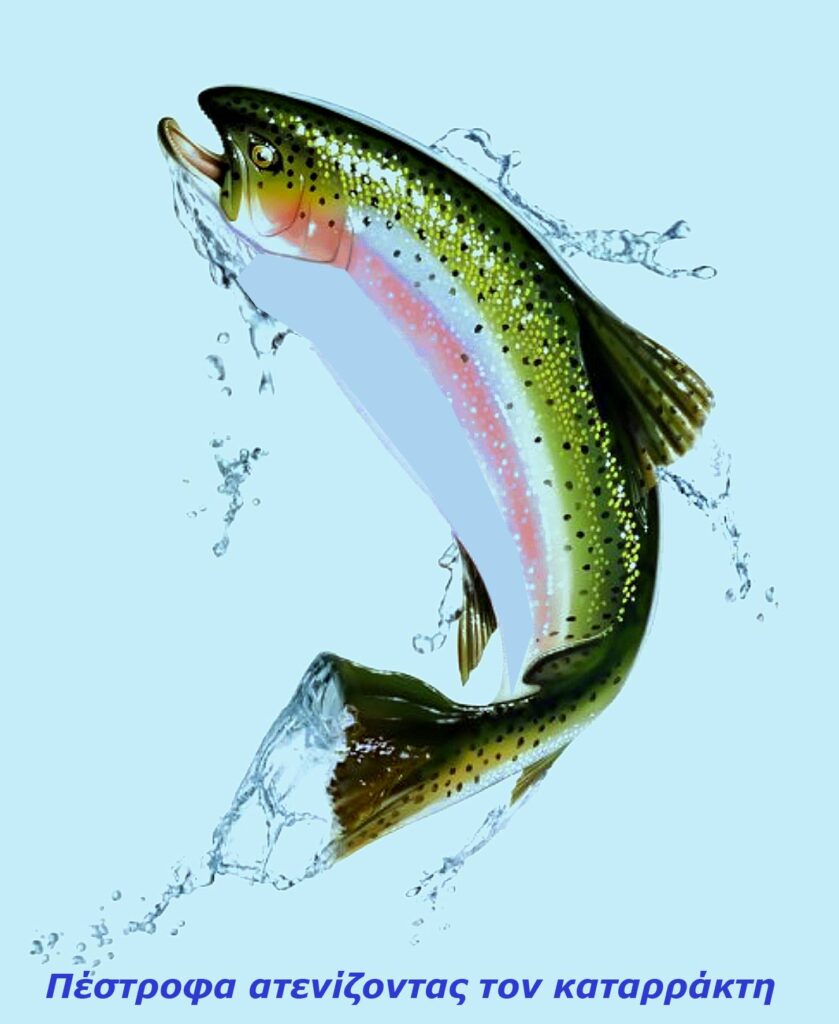 Όχι μόνο δε γίναμε “πέστροφες” και δε σηκωθήκαμε ψηλότερα, αλλά ξεπέσαμε σε ψάρια του σκοτεινού βυθού: Δράκαινες, Χάνους, Βλαχοσφυρίδες και… αλληλούια). Όταν καμιά φορά, για πλάκα και μόνο, ψάχνω σε “στολές, ράσα και γραβάτες” (δηλαδή σε “εξουσίες”) για να βρω κάποια “πέστροφα”, ας είν’ και λίγο “αρπαγμένη” ή και για τα σίδερα, απογοητεύομαι! Αλλά αμέσως συνέρχομαι, γιατί σκέφτομαι ότι οι “πέστροφες” δε μπορούν να ζήσουν σε τοξικά περιβάλλοντα, όπως και τα αηδόνια δε ζούνε στα “τοξικά” κλουβιά!