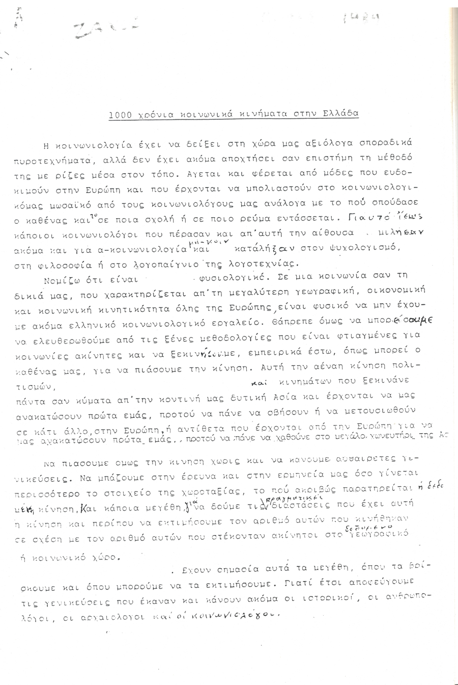 Η προσπάθειά του αυτή δεν περιοριζόταν στο πλαίσιο μιας ακαδημαϊκής έρευνας. Προσπαθούσε να βρει ρίζες, εκεί που ο ίδιος πίστευε πως υπάρχουν για να στεριώσουν οι δυνάμεις της κοινωνικής απελευθέρωσης στον τόπο μας. «Από πάντα πίστευα πως οι δυνάμεις της κοινωνικής απελευθέρωσης δεν προχωράνε στον τόπο μας, γιατί δεν έχουν αρκετά βαθιές ρίζες. Γιατί τα μοντέλα τους είναι εισαγόμενα. Από τη Δυτική Ευρώπη αρχικά, τη Γαλλική Επανάσταση, τα καρμπονάρικα κινήματα, την Κομμούνα του Παρισιού κι ύστερα από την Ανατολική Ευρώπη».