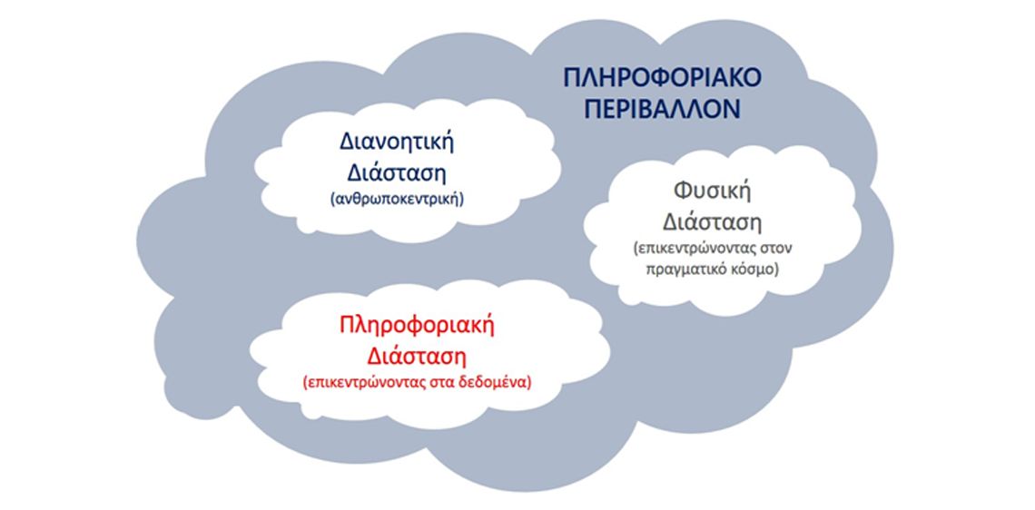Μπορούμε να διακρίνουμε τρεις διαστάσεις του πληροφοριακού περιβάλλοντος, όπως φαίνονται στο σχήμα: