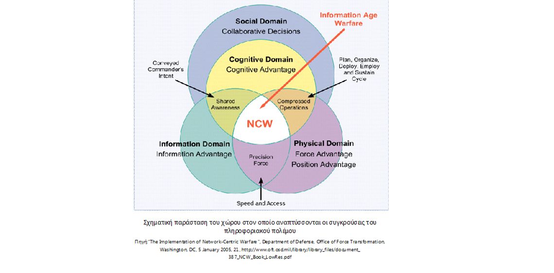 -Η Πληροφοριακή διάσταση επικεντρώνεται στα δεδομένα (data) και αναφέρεται στις πληροφορίες, τον πληροφοριακό πόλεμο, τις επιχειρήσεις πληροφοριακής υποστήριξης, την διανομή πληροφοριών, την στοχοθέτηση για συλλογή πληροφοριών, κλπ.