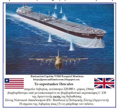 Το Ηρακλής δεν επλήγη απευθείας με βόμβα, αλλά επειδή αυτές έπεσαν κοντά του προκλήθηκε εισροή υδάτων. Το πλοίο έλαβε μεγάλη κλίση και κατευθύνθηκε έτσι σε ναυπηγείο της Χιλής για επισκευή. Ήταν ναυλωμένο από αμερικανική εταιρεία και πήγαινε στην Αλάσκα για να φορτώσει αργό πετρέλαιο. Βρισκόταν 480 μίλια βορειοανατολικά των Φώκλαντς και σε άσχετη περιοχή.