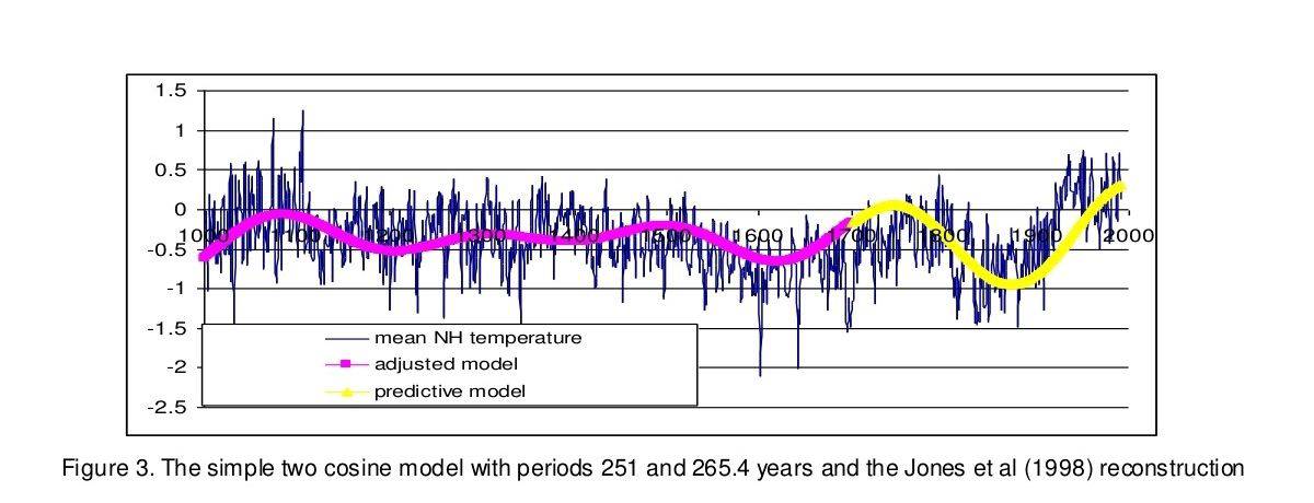 Στο γράφημα αυτό λοιπόν φαίνεται η ηλιακή δραστηριότητα να μειώνεται τα τελευταία 70 χρόνια σε αντίθεση με τις θερμοκρασίες που ανεβαίνουν. Αντίθετα όμως από τις εκτιμήσεις της NASA οι πραγματικές μετρήσεις της φωτεινότητας του ήλιου από το δορυφόρο του ACRIM δείχνουν ότι η ηλιακή φωτεινότητα κορυφώθηκε περί το 2000, όπως προβλέπεται και στα ερευνητικά μας ευρήματα.