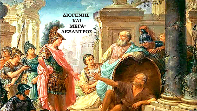 Σημαντικό και συμβολικό, είναι το “μάδημα” που έκανε ο Διογένης στον Μεγαλέξαντρο! Αυτό συνέβη στην Κόρινθο, το 336 π.Χ. όταν σε ένα πανελλήνιο συνέδριο κατέβηκε, ο Μεγαλέξαντρος, ως επικεφαλής του. Εκεί ήταν και ο Διογένης, ξαπλωμένος κάπου, στον ήλιο! Τον πλησίασε ο Μεγαλέξαντρος και τον ρώτησε, τι χάρη να του κάνει. Ο άλλος τον “μάδησε”, απαντώντας του (λογοπαιγνιακώς), με δύο λέξεις: «Αποσκότησών με» (στην πράξη «μη μου κρύβεις τον ήλιο» και στην ουσία “σήκω και φύγε”). Και φεύγοντας ο Μεγαλεξαντρούλης, είπε στις κάμερες του ΣΚΑΪ «Αν δεν ήμουν Αλέξανδρος, θα ήθελα να είμαι Διογένης»!