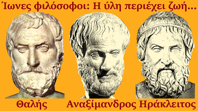 Οι πρώτοι που ξέφυγαν από μαγικές και θεολογικές ερμηνείες του κόσμου και που μεταξύ άλλων παρατήρησαν την ύλη, αλλά και την κίνηση γης και ήλιου, ήταν οι Ίωνες φιλόσοφοι: Θαλής, Αναξίμανδρος, Ηράκλειτος, Αναξιμένης, Αναξαγόρας. Η σκέψη τους ήταν σύνθετη και όχι μονοδιάστατη (δηλ. θρησκευτική). Ο “κανών” τους (“εξίσωση”), ήταν: «Επειδή συμβαίνουν τα υλικά φαινόμενα Α, Β, Γ, …Ν, δια ταύτα (=κατόπιν σκέψεως), ιδού το συμπέρασμα».