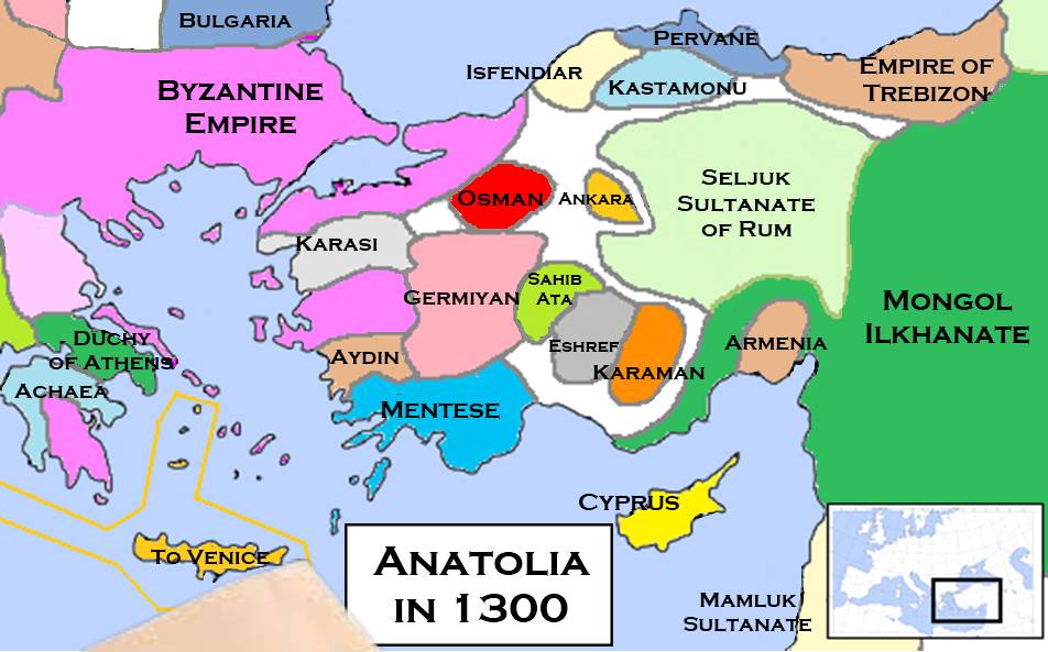 Στα ερείπια του κράτους των Σελτζούκων συστάθηκαν τα τουρκομανικά εμιράτα. Πρώτο ήταν εκείνο του Καραμάν στην κεντρική Μικρά Ασία. Οι Καραμανίδες πρώτοι χρησιμοποίησαν την τουρκική αντί της περσικής γλώσσας στην διοίκηση, το όνομά τους δε πήρε η περιοχή και οι τουρκόφωνοι Έλληνες κάτοικοί της (Καραμανλήδες). Στην Φρυγία βρισκόταν το εμιράτο Γερμιγιάν, με έδρα το Κοτύαιον (Κιουτάχεια). Ύστερα από την πτώση της δυτικής Μικράς Ασίας, στις ακτές του Αιγαίου και της Προποντίδος δημιουργήθηκαν νέα εμιράτα, που είχαν σημαντικό ρόλο στην τελική κατάπτωση της Βυζαντινής αυτοκρατορίας. Νοτιοδυτικά στην Καρία βρισκόταν το εμιράτο Μεντεσέ.