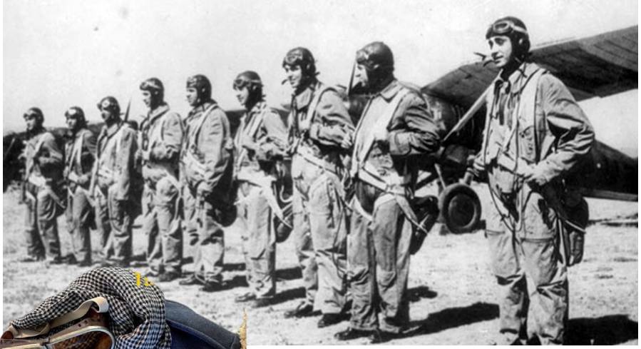 Έλληνες χειριστές μαχητικών φωτογραφίζονται μπροστά στα αεροπλάνα τους το 1940.