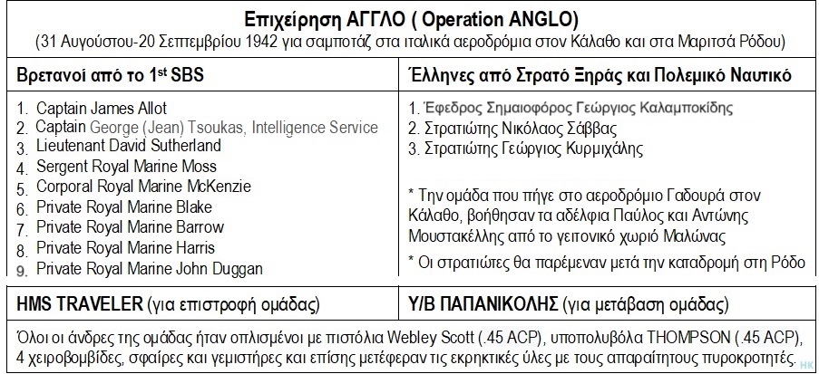 Τα ιταλικά αεροπλάνα από τα αεροδρόμια της Ρόδου ήταν μεγάλο πρόβλημα για τις συμμαχικές δυνάμεις και γι’ αυτό είχαν στοχοποιηθεί. Οι Άγγλοι, αφού έκαναν αρκετές ανεπιτυχείς απόπειρες καταστροφής τους, αποφάσισαν την εκτέλεση μιας καταδρομικής ενέργειας, με την κωδική ονομασία “Αnglo”.
