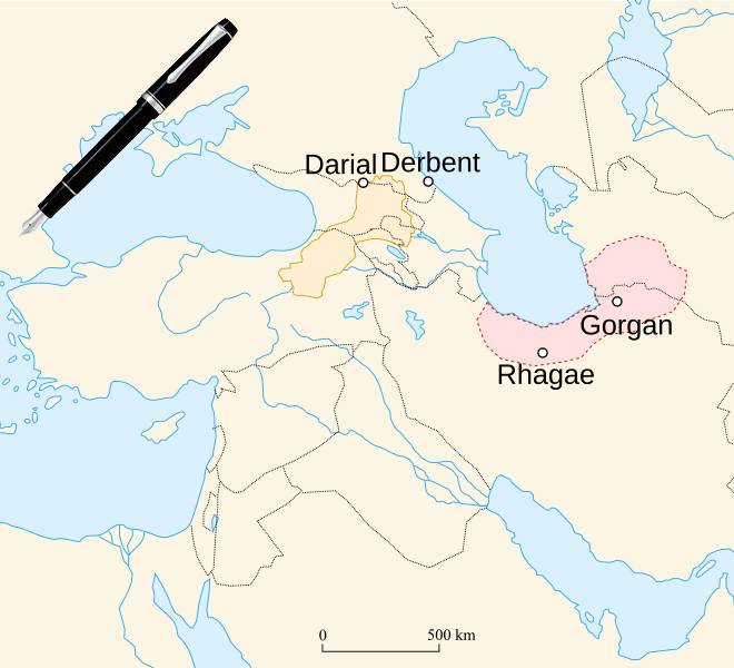 Η βόρεια απειλή ήταν τόσο μεγάλη, που οι Βυζαντινοί και οι Πέρσες είχαν συμφωνία να συντηρούν από κοινού αμυντικά έργα στα περάσματα του Καυκάσου – ακόμη και σε περιόδους που είχαν μεταξύ τους πόλεμο. Διάφορα περάσματα στον Καύκασο και στην Κασπία ταυτίστηκαν με τις περίφημες Πύλες του Μεγάλου Αλεξάνδρου, το τελευταίο ανάχωμα του πολιτισμού μπροστά στην βαρβαρότητα. Ο πραγματικός Αλέξανδρος βέβαια πέρασε από τις Κασπίες Πύλες, όπως μας λέει ο Αρριανός, δεν έκτισε όμως κάποιο τείχος. Πρώτη αναφορά ενός τέτοιου έργου συναντάται στον Εβραίο ιστορικό Φλάβιο Ιώσηπο.