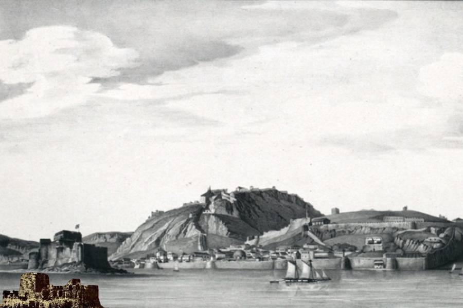 Άγνωστος συγγραφέας αναφέρει σε κείμενο που δημοσιεύτηκε το 1890 σε αγγλικό περιοδικό: «Mία από τις κυριότερες δημόσιες φυλακές για καταδίκους Έλληνες εγκληματίες έχει κτιστεί μέσα στα χαλάσματα ενός παλιού βενετικού κάστρου. (…) Mια ανάβαση χιλίων πέτρινων σκαλοπατιών ή ένας περίπατος μέσα από έναν ελικώδη καρόδρομο φέρνει τον επισκέπτη στην πύλη του παλιού κάστρου, όπου ένας από τους φύλακες θα διαταχθεί να τον ξεναγήσει στο χώρο (…) Oι φυλακισμένοι είναι συνωστισμένοι σε ανοιχτές αυλές, οι οποίες περιβάλλονται από κτίρια μέσα στα οποία οι φυλακισμένοι στεγάζονται τη νύχτα.