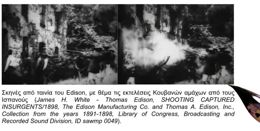 Όμως, το αποκορύφωμα έρχεται με μία βωβή ταινία μικρού μήκους που έχει κινηματογραφηθεί στα εργαστήρια του Thomas Edison στο New Jersey. Στην ταινία εμφανίζονται Ισπανοί στρατιώτες να εκτελούν αμάχους και προβάλλεται προκαλώντας φρίκη, αν και καταγγέλλεται από ελάχιστους δημοσιογράφους για το θράσος της πλαστογραφίας. Εκτός όμως από τις κινηματογραφημένες στο New Jersey σύντομες σκηνές με κυρίαρχο θέμα τις ισπανικές θηριωδίες στην Κούβα, ο Edison κινηματογραφεί ακόμα 6 μικρής διάρκειας σκηνές για ανάλογα γεγονότα στις Φιλιππίνες. Στις ταινίες αυτές χρησιμοποιεί Αφροαμερικανούς με κατάλληλο σωματότυπο, ώστε να θυμίζουν στους θεατές τα χαρακτηριστικά των Φιλιππινέζων.