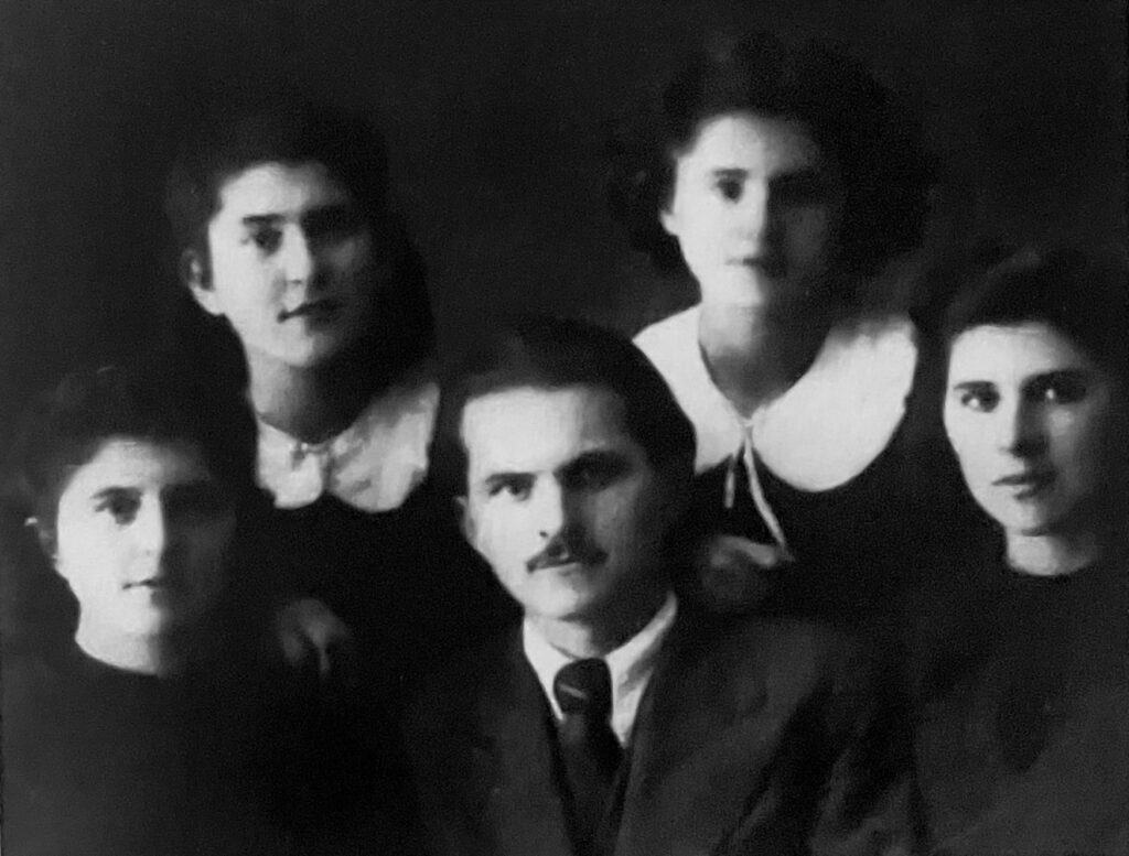 Τα αδέλφια Παπακόγκου που δεν έσμιξαν κάτω από την ίδια στέγη στα Τρίκαλα το 1941: στο κέντρο ο Νίκος, αριστερά του η Βάγια, δεξιά του η Δήμητρα, πάνω πρώτη αριστερά η Σοφία και δίπλα της η Αρετή (φωτ. «Αρετή Παπακόγκου & Θύμιος Βαρβάκης. Μικρό Αφιέρωμα Μνήμης», Αθήνα 2024).