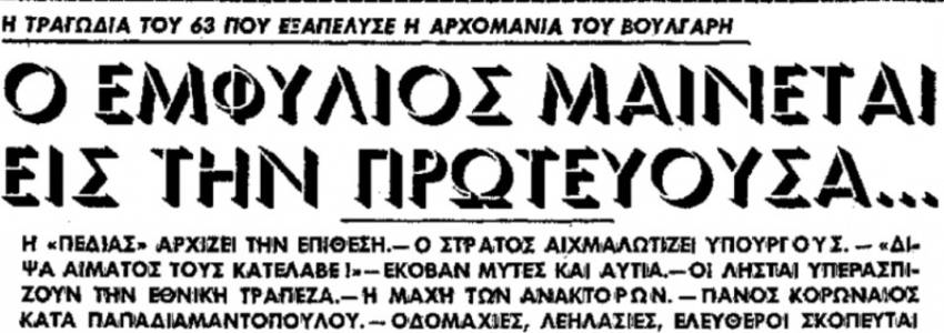 Και το κράτος άλλους έκοβε στη λαιμητόμο και σ’ άλλους έδινε “αρματολίκι”, δηλαδή τους όριζε… Οροφύλακες. Σε εξαιρετικές περιπτώσεις, μάλιστα, έπαιζαν και σημαντικό πολιτικό ρόλο, όπως ο αρχιλήσταρχος Κυριάκος, που στα “Ιουνιανά” του 1863, υπερασπιζόταν με τους “Πεδινούς” του Δημητρίου Βούλγαρη την… Εθνική Τράπεζα!
