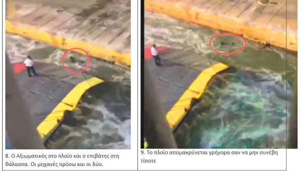 Είναι εγκληματική ενέργεια το σπρώξιμο ενός ανθρώπου στη θάλασσα, όπως και η μη άμεση αναφορά του συμβάντος, στη γέφυρα και η έναρξη των διαδικασιών διάσωσης. Εγκληματική επίσης είναι και η αδιαφορία του πλοιάρχου για την μη κράτηση των μηχανών και η συνέχιση του πλου μέχρι την Αίγινα. Δυστυχώς το πλοίο απέπλευσε με τις συνειδήσεις των υπευθύνων ήσυχες αφού, ίσως θεώρησαν πως κανείς δεν θα είδε το περιστατικό. Είναι ανεπίτρεπτο να αποπλέει ένα πλοίο που ενεπλάκη σε κάποιο συμβάν που έγινε αντιληπτό και που οι αρμόδιες αρχές ενημερώθηκαν από ενεργούς πολίτες, να δίδεται μετά από 44 λεπτά από τον εισαγγελέα και το κεντρικό λιμενάρχη του Πειραιά, η εντολή επιστροφής του στο χώρο του ατυχήματος!