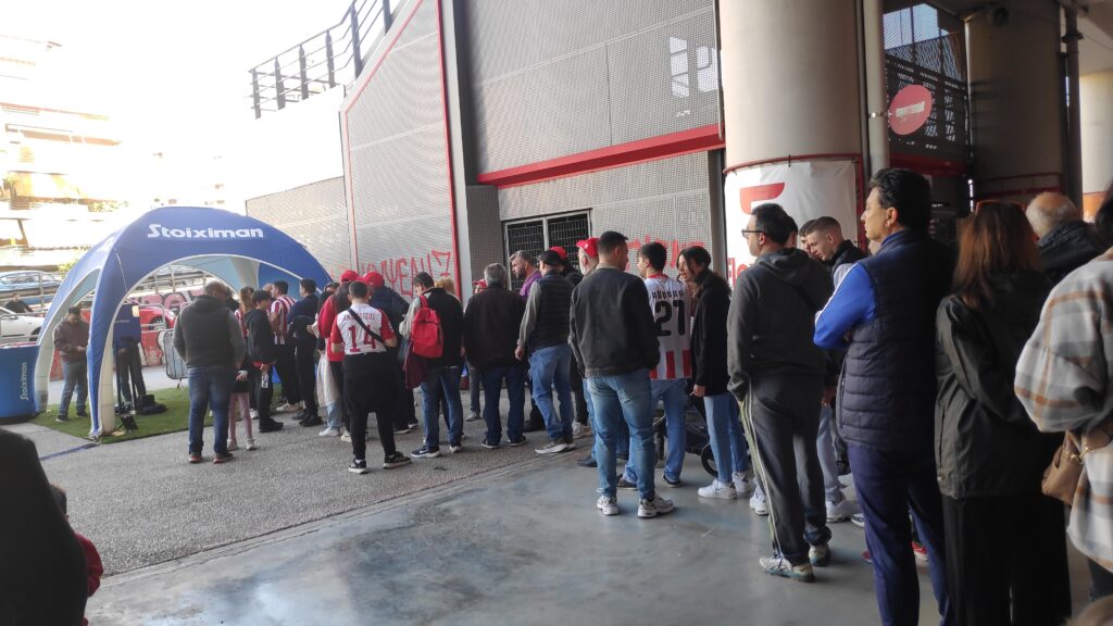 Ουρές στο σημείο διάθεσης των συλλεκτικών καρτών στα εκδοτήρια του γηπέδου. Περιμετρικά στημένο ένα τεράστιο λούνα παρκ με φουσκωτά κάθε είδους κι έμπνευσης, διασκεδάζει τα μικρά παιδιά που δεν θέλουν να το αποχωριστούν, δοκιμάζοντας τις δυνάμεις, τις αντοχές τους ή την ευστοχία στα γκολ.