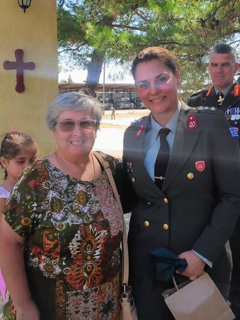 Εστιάζουμε στη μητέρα της απερχόμενης διοικητού, στην Κερασιά Τζεράκη, που ήταν στην τελετή ανάμεσα στο κοινό με τον σύζυγό της Γιάννη. Μια πολύτεκνη μητέρα τεσσάρων κοριτσιών, της Σταυρούλας, μόνιμου κατοίκου Σουηδίας, της Ελένης που ζει στο Κρυονέρι Αττικής, της Σοφίας που υπηρετεί και αυτή σε μονάδα του Απαλού Έβρου και της 40χρονης Αθανασίας Τουζιαράκη, απερχόμενης διοικητού του 31ΛΜΧ στο στρατόπεδο “Οπλαρχηγού Χρυσοστόμου Χριστομαλλίδη”.