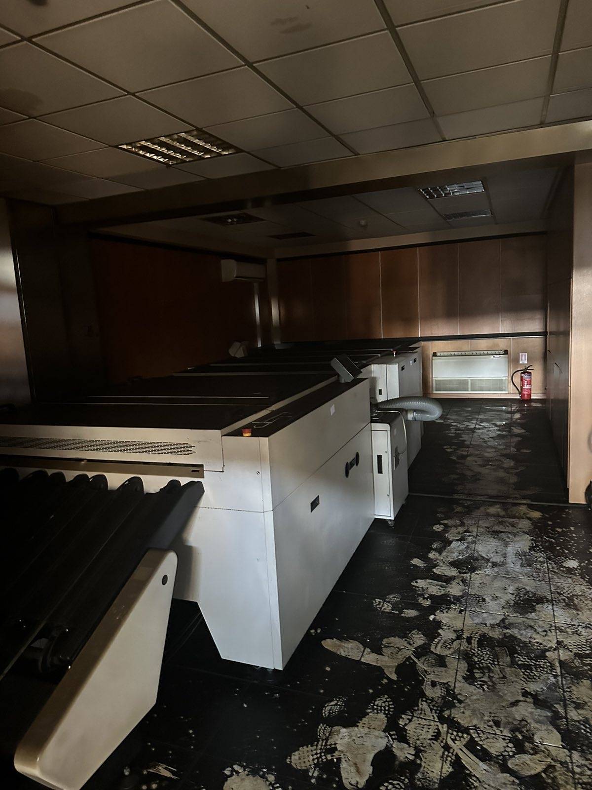 Ένα βαρύ σύννεφο αιθάλης, σκέπασε τις εγκαταστάσεις του Ομίλου. Τοίχοι κατεστραμμένοι, ο εξοπλισμός του καναλιού όπου γίνεται το μοντάζ, το πιεστήριο της εφημερίδας, τα γραφεία των δημοσιογράφων… Οι φλόγες περνούσαν από παντού, ακόμη και μέσα από το δίκτυο του κλιματισμού…